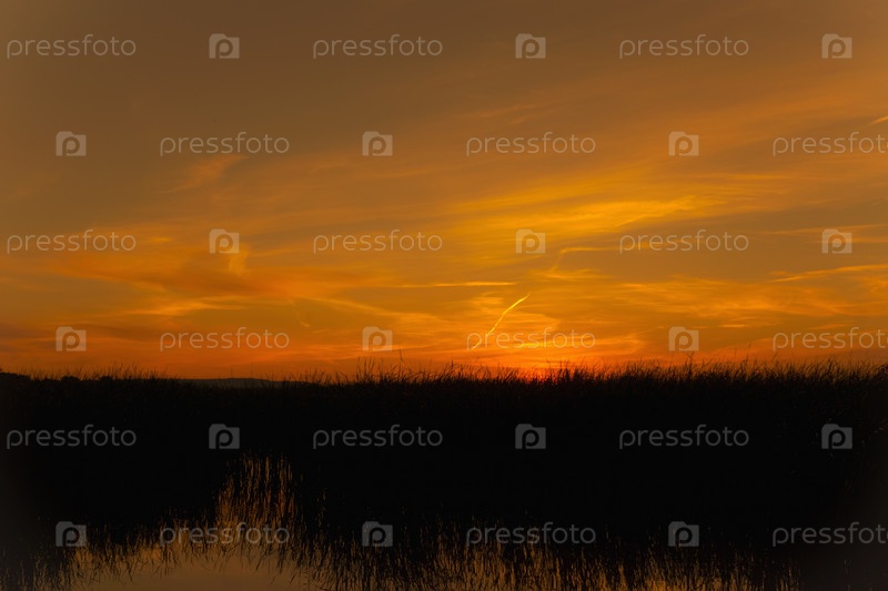 Закат в камышах на реке