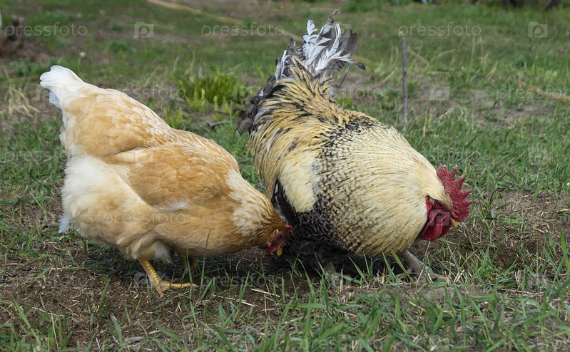 Петух с курицей в солнечный день к весне