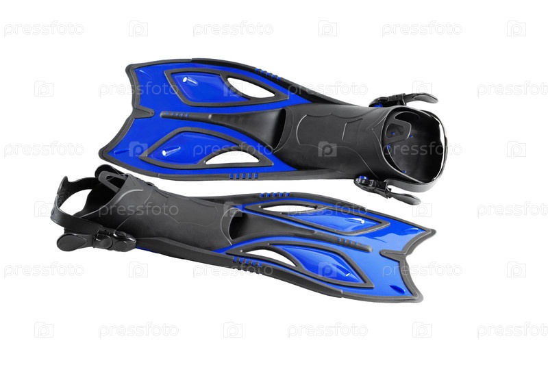 Ласты. Черный с синим. Крупный план. Изолированные на белом фоне