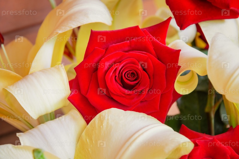 Букет цветов. Закрыть. Избирательный фокус на розе