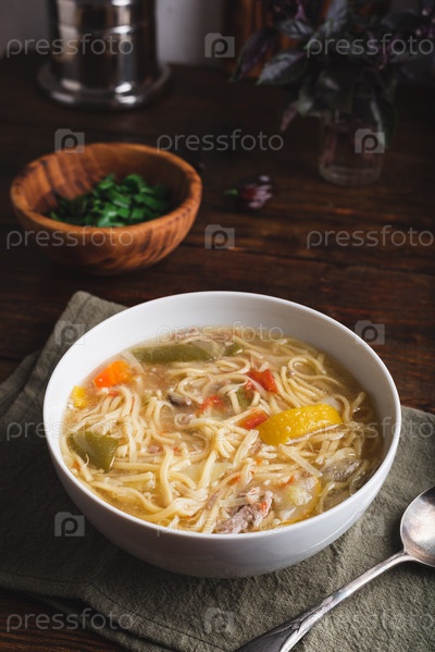 Суп-лапша с овощами и утиным мясом