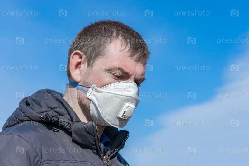 Бледный и больной человек, зараженный инфекцией или вирусом, в медицинской маске с грустным лицом. Коронавирус пандемия