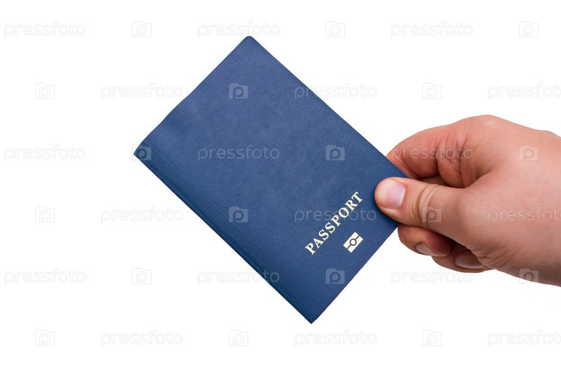 Паспорт в руках крупным планом на белом фоне