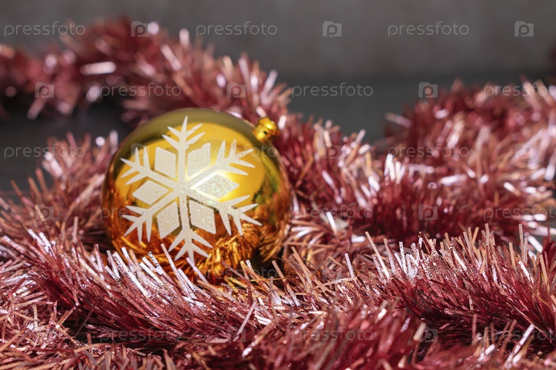 Елочный шар и мишура в новогодней композиции, для украшения комнаты и елки