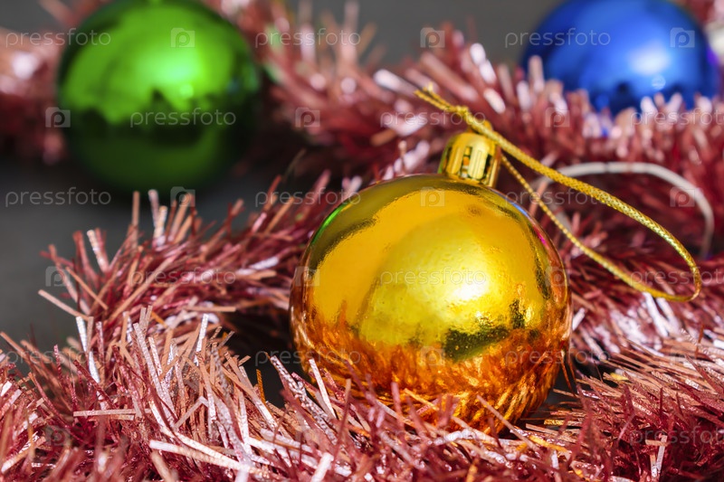 Набор елочных игрушек из разноцветных шаров и мишуры, для создания атмосферы новогодних праздников