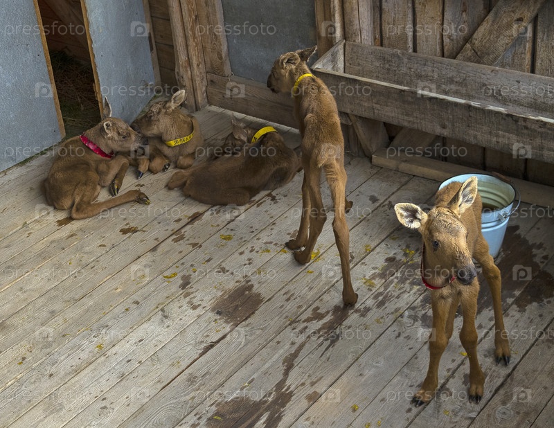Новорожденные лосята на лосиной ферме. Сумароковская ферма, Костромская область, Россия