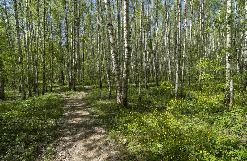 Тропинка в весеннем лесу. Узкое, Битцевский лесопарк, Москва. Солнечный день в мае