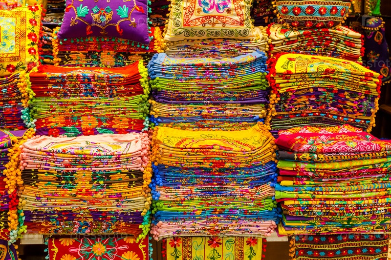 Наволочки для продажи на Гранд базаре Стамбул, Турция, Капали Чарси. Арабские и турецкие ремесленные изделия на восточном базаре