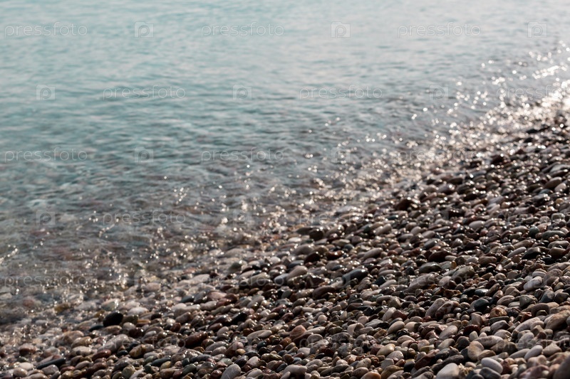Галечный пляж в солнечном свете на знаменитом турецком пляже Коньяалты, Анталия, Турция