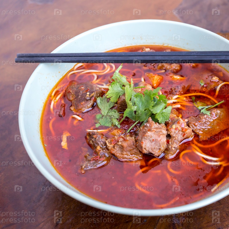 Лапша кунг-фу, как острая лапша с говядиной, овощами и китайским соусом, традиционная китайская кухня