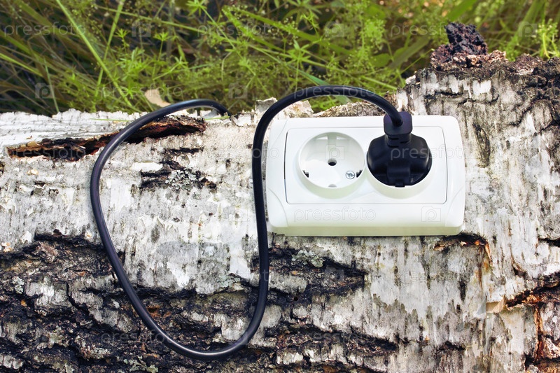 Розетка и вилка на дереве