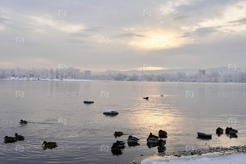 Река Енисей в морозный зимний день