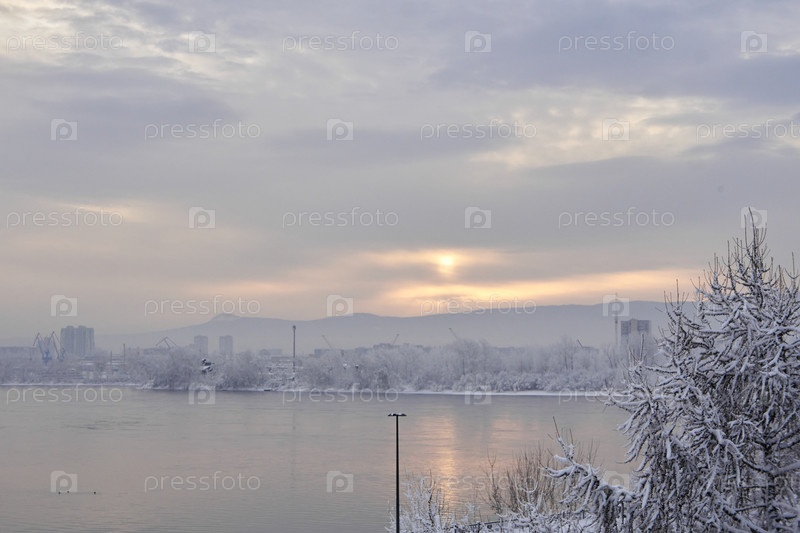 Река енисей в морозный зимний день