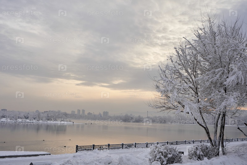 Река Енисей в морозный зимний день