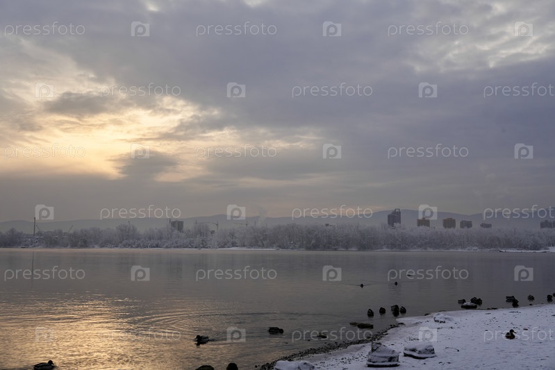 Река Енисей в морозный зимний день