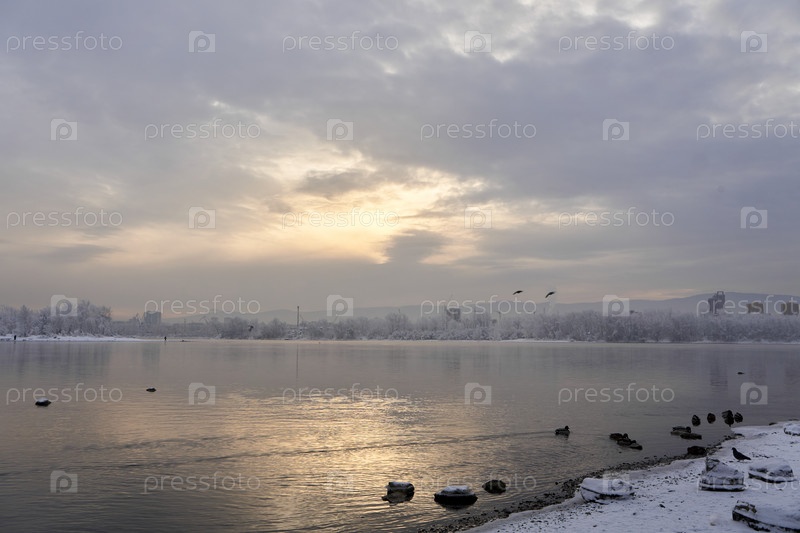 Река Енисей в морозный зимний день