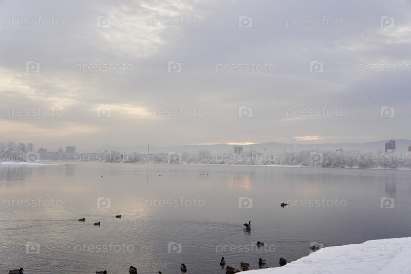 Река енисей в морозный зимний день