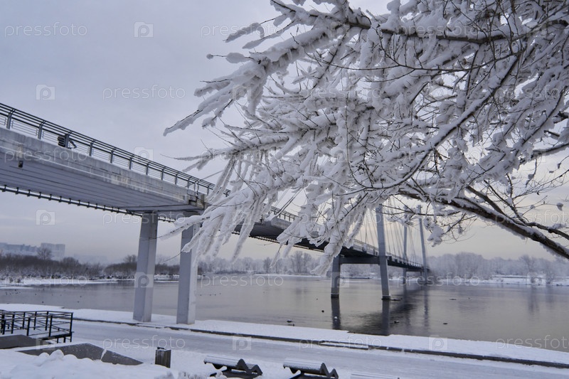 Река Енисей в морозный зимний день