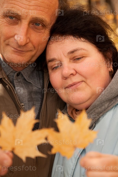 Мужчина и женщина в возрасте на природе осенью