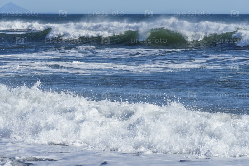 Морской пейзаж с красивыми волнами. Камчатка, Россия