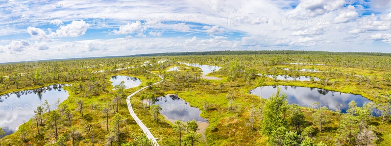 Панорама болота Большого Кемерского болота в Национальном парке Кемери в Латвии