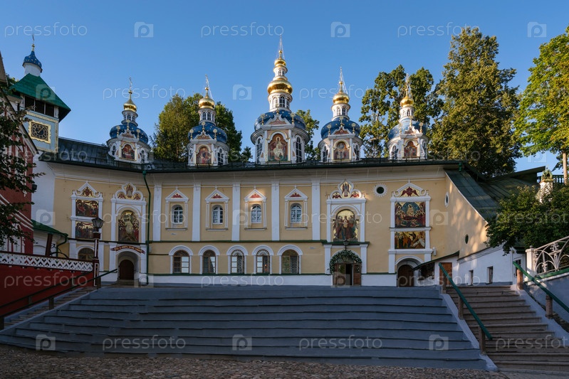 Успенский собор Свято-Успенского Псково-Печерского монастыря в солнечный летний день, Печоры, Псковская область, Россия