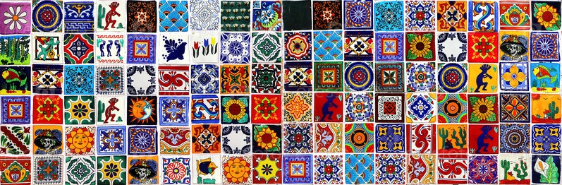 Мексиканская керамическая плитка. Формат баннера. Разноцветный яркий красочный фон