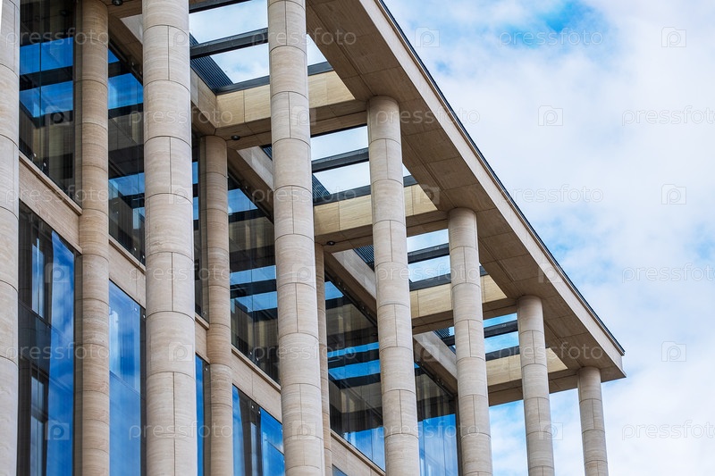 Фрагмент фасада современного здания с архитектурными колоннами
