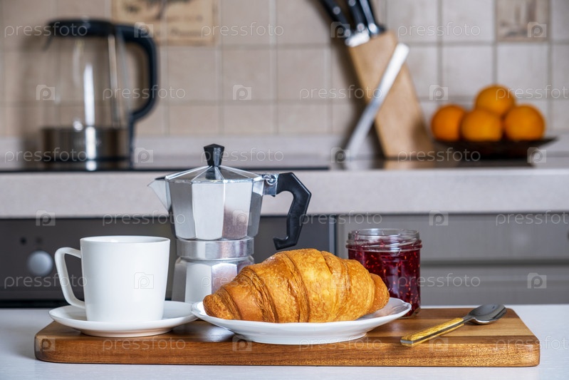 Подавать на сервировочной доске с кофе, французским круассаном и джемом