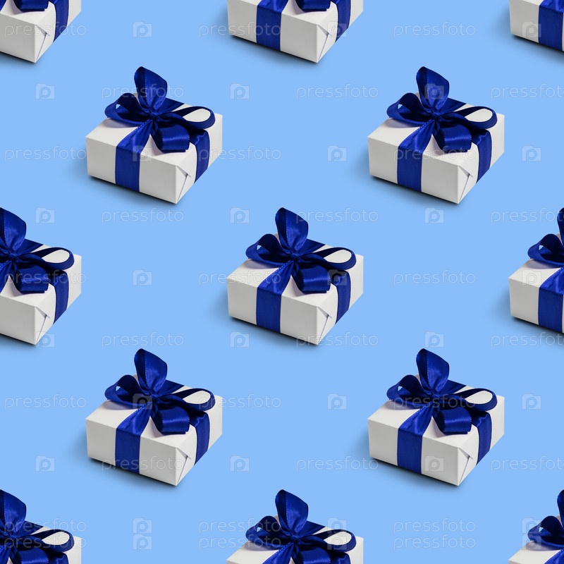 Бесшовный фон с подарками на синем фоне. Рождественские украшения