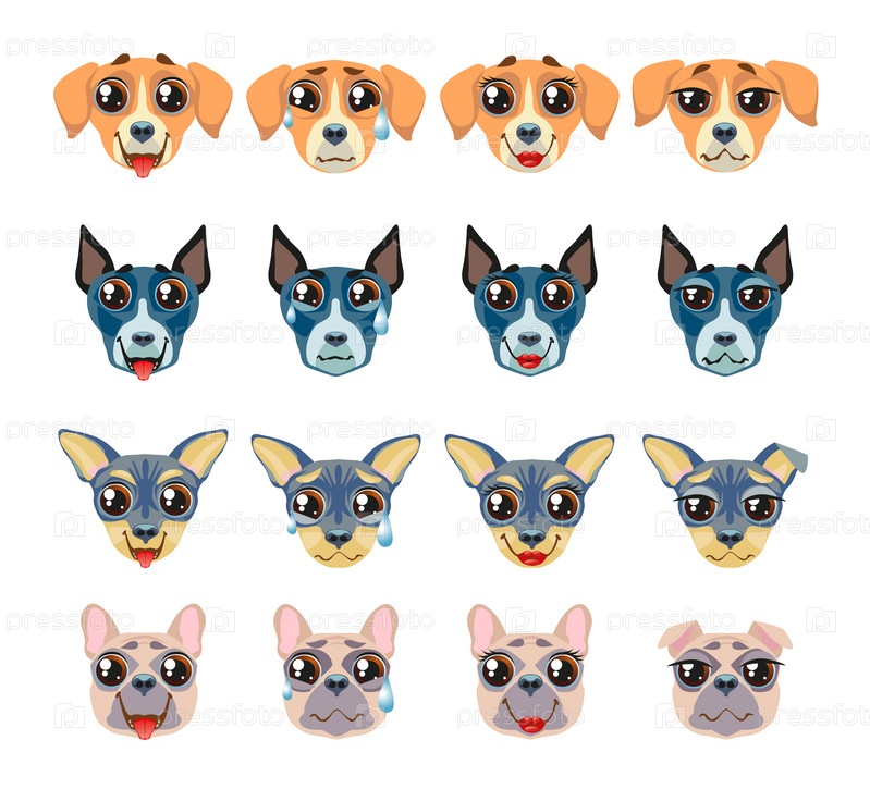 Набор векторных наклеек, смайликов с милой собакой