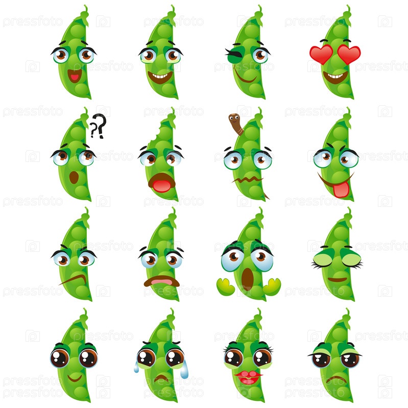 Набор векторных наклеек, смайликов с милым горошком