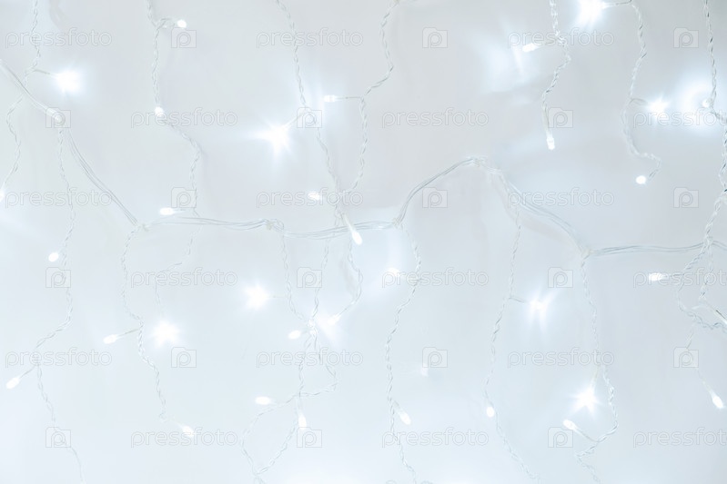 Новый год и Рождество фон с серебряными гирляндами с огнями с боке в размытии. Серые нейтральные цвета с копией пространства и макетом