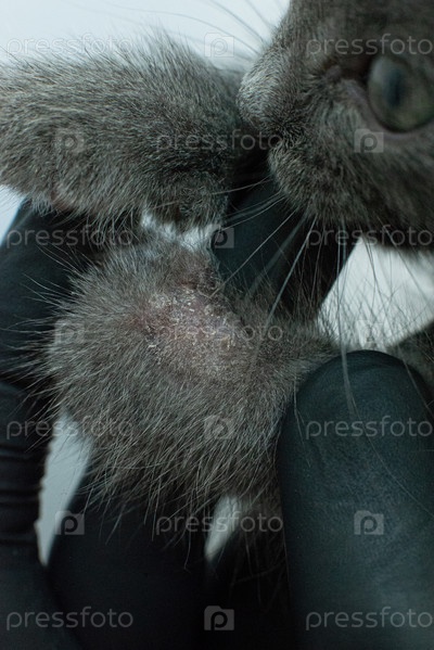Лишай крупным планом на коже кошки. Болезни домашних животных