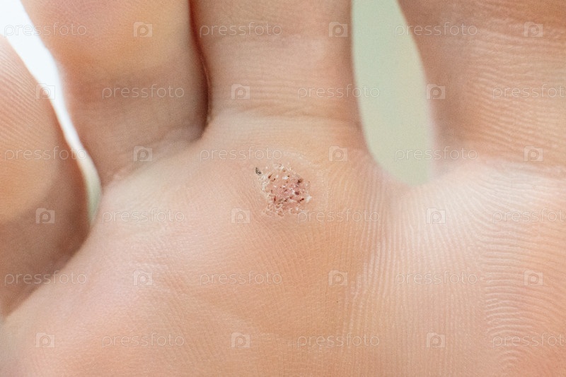 Бородавка на тупом крупном плане. Макроснимок папилломы человека на ноге