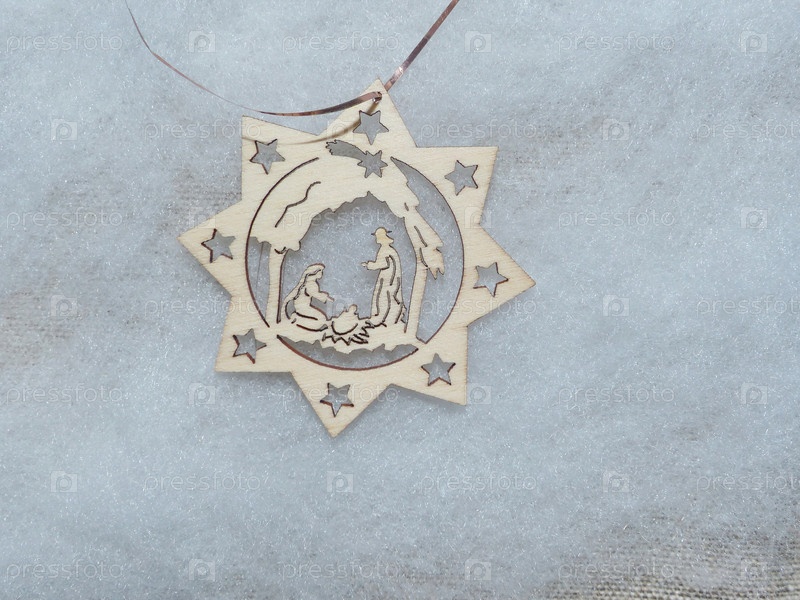 Рождественская звезда с рождественским вертепом. Концепция Нового года. Рождественская игрушка из дерева. Новый год и Рождество