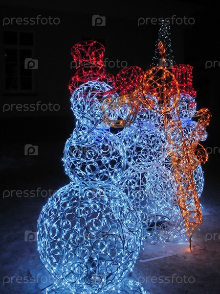 Джаз-банд веселых снеговиков. Концерт всю ночь. Новогодняя иллюминация 2023 года. Концепция Нового года и Рождества. Волшебный сочельник