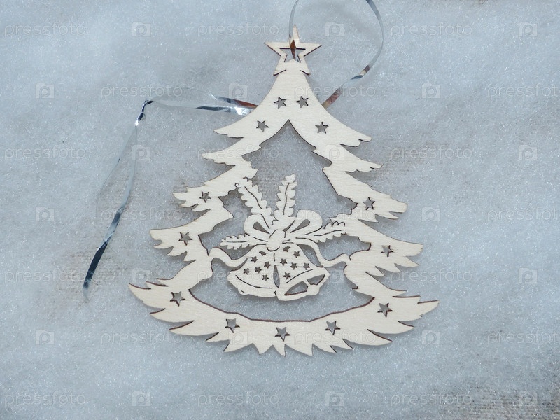 Рождественская елка с колокольчиками. Концепция Нового года. Рождественская игрушка из дерева. Праздничный фон. Новый год и Рождество