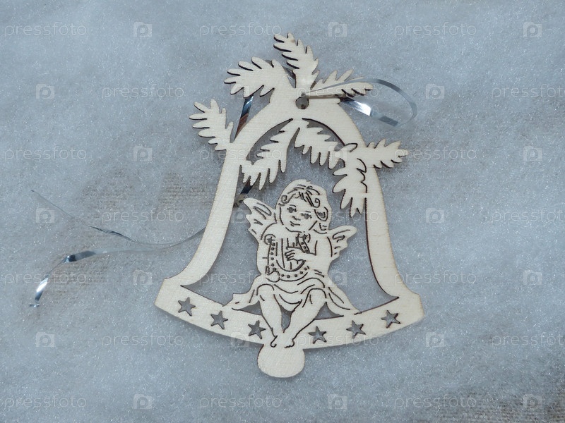 Рождественский колокольчик. Рождественская игрушка из дерева. Концепция Нового года. Праздничный фон. Новый год и Рождество