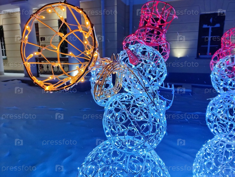 Джаз-банд веселых снеговиков. Концерт всю ночь. Новогодняя иллюминация 2023 года. Концепция Нового года и Рождества. Волшебный сочельник