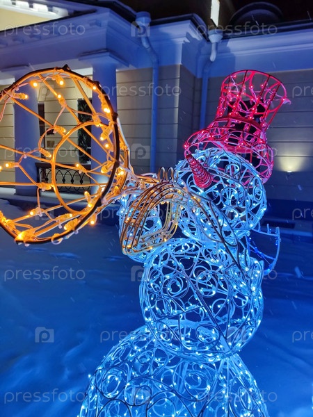 Джаз-банд веселых снеговиков. Концерт всю ночь. Новогодняя иллюминация 2023 года. Концепция Нового года и Рождества. Волшебный сочельник