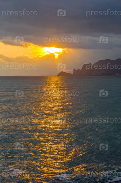 Закат солнца над Черным морем. Вид с мыса Алчак, Судак, Крым