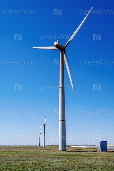 Ветрогенераторы в весенней степи. снимок сделан в России, в Оренбургской области