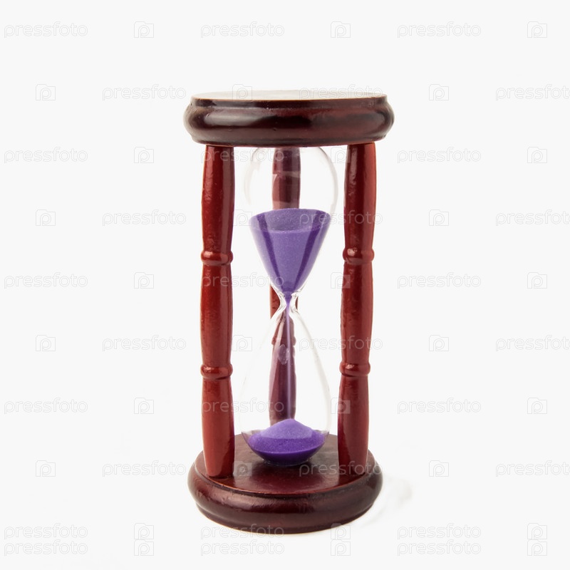 Деревянные винтажные песочные часы на белом фоне