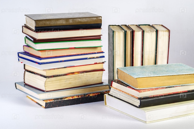 Стопка старых книг на белом фоне