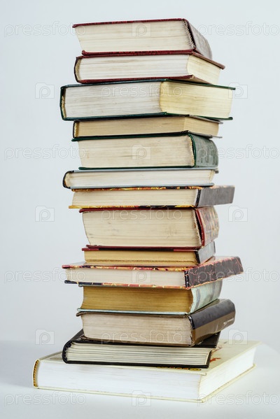 Стопка старых книг на белом фоне