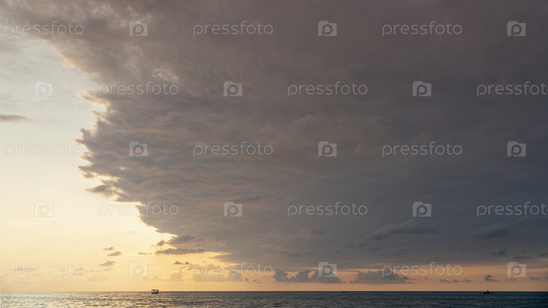 Морской закат. Солнечный путь бликов на воде. Солнце уходит за горизонт