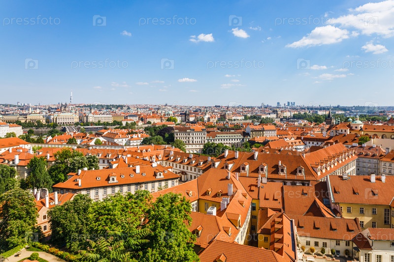 Исторический центр Старого города Праги с красными черепичными крышами, Чехия