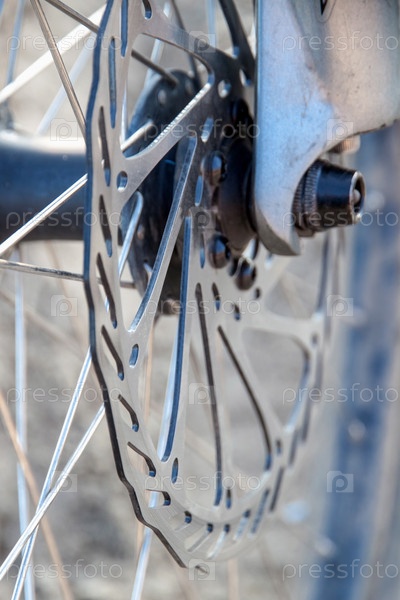 Часть тормозного диска горного велосипеда 203 мм крупным планом. Размытый фон