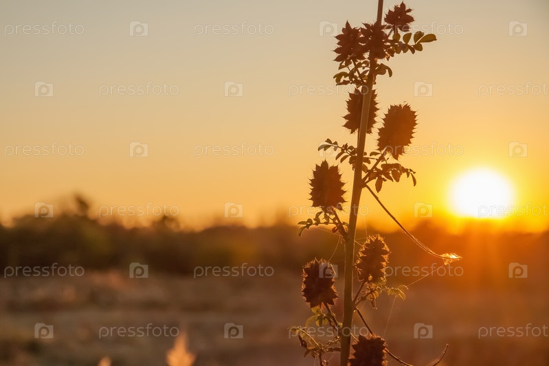 Солодка колючая на фоне заката
